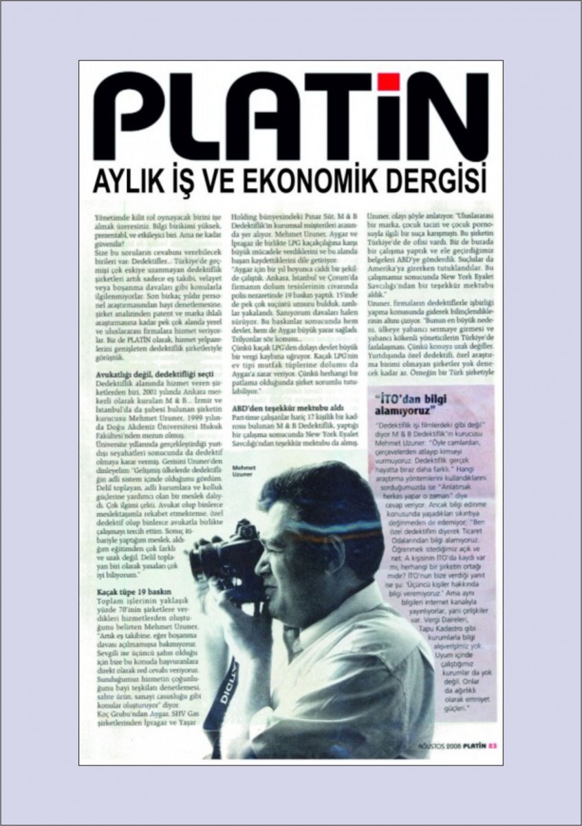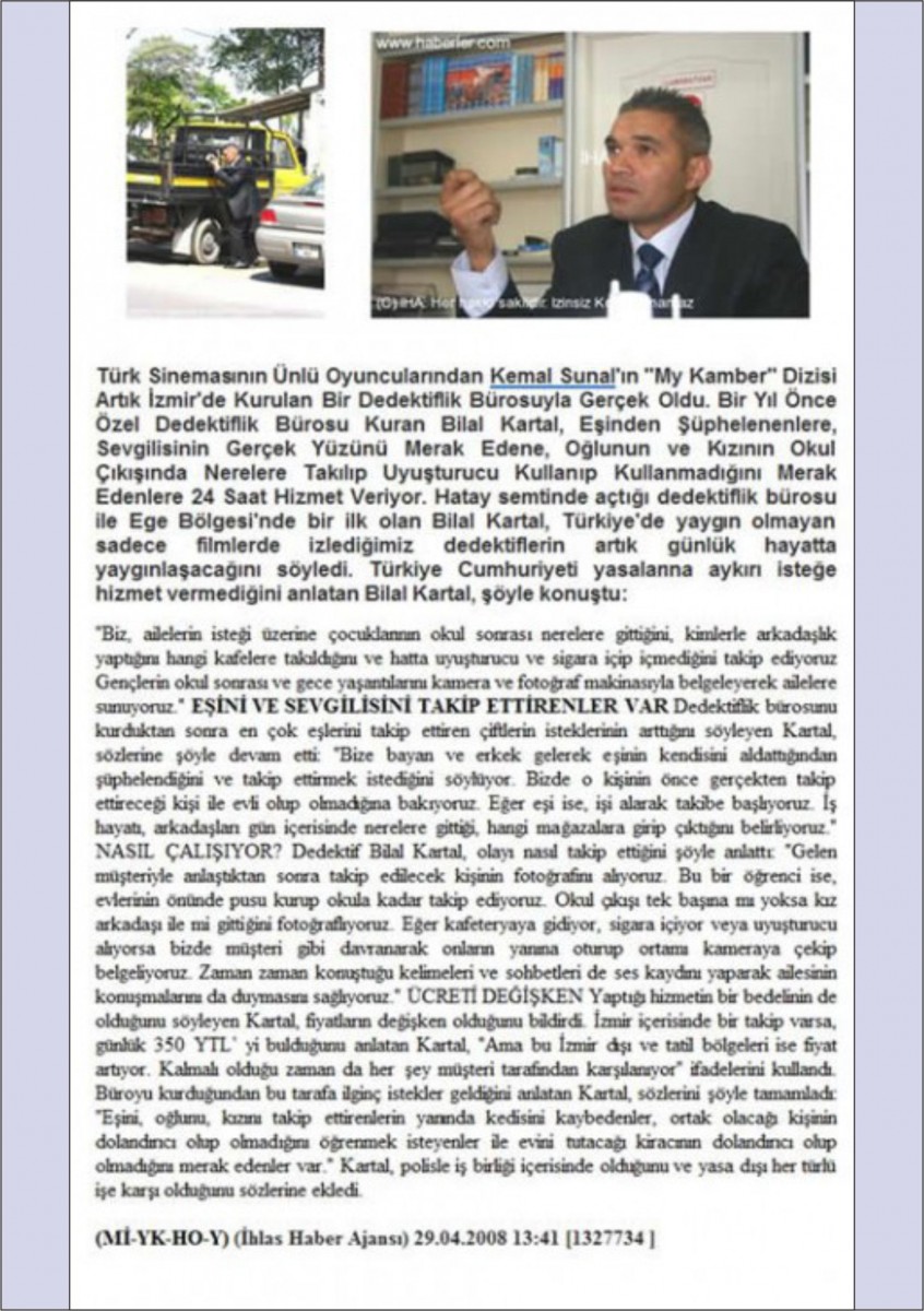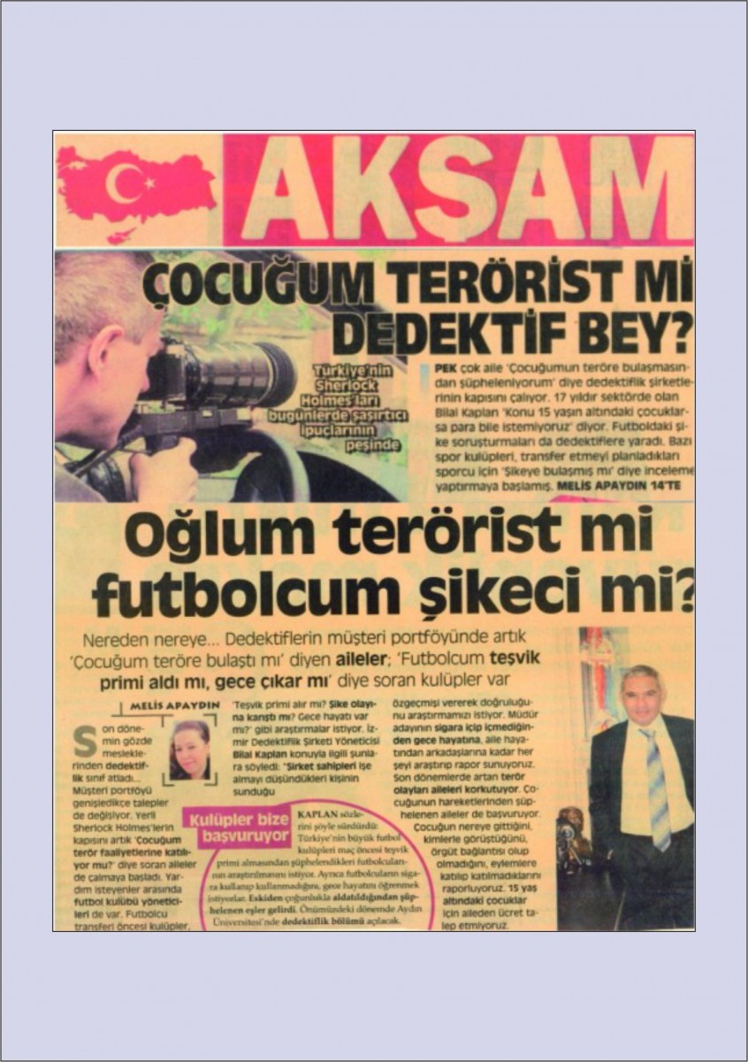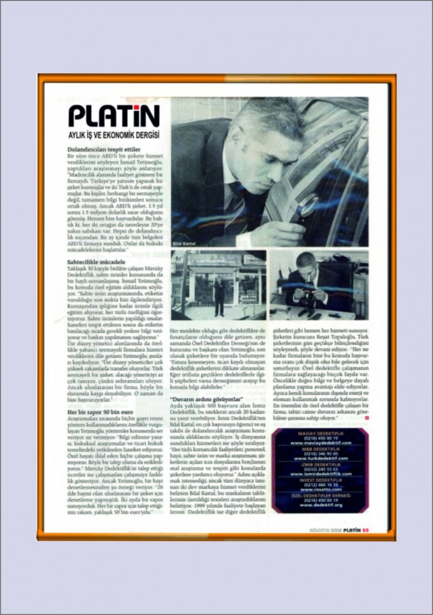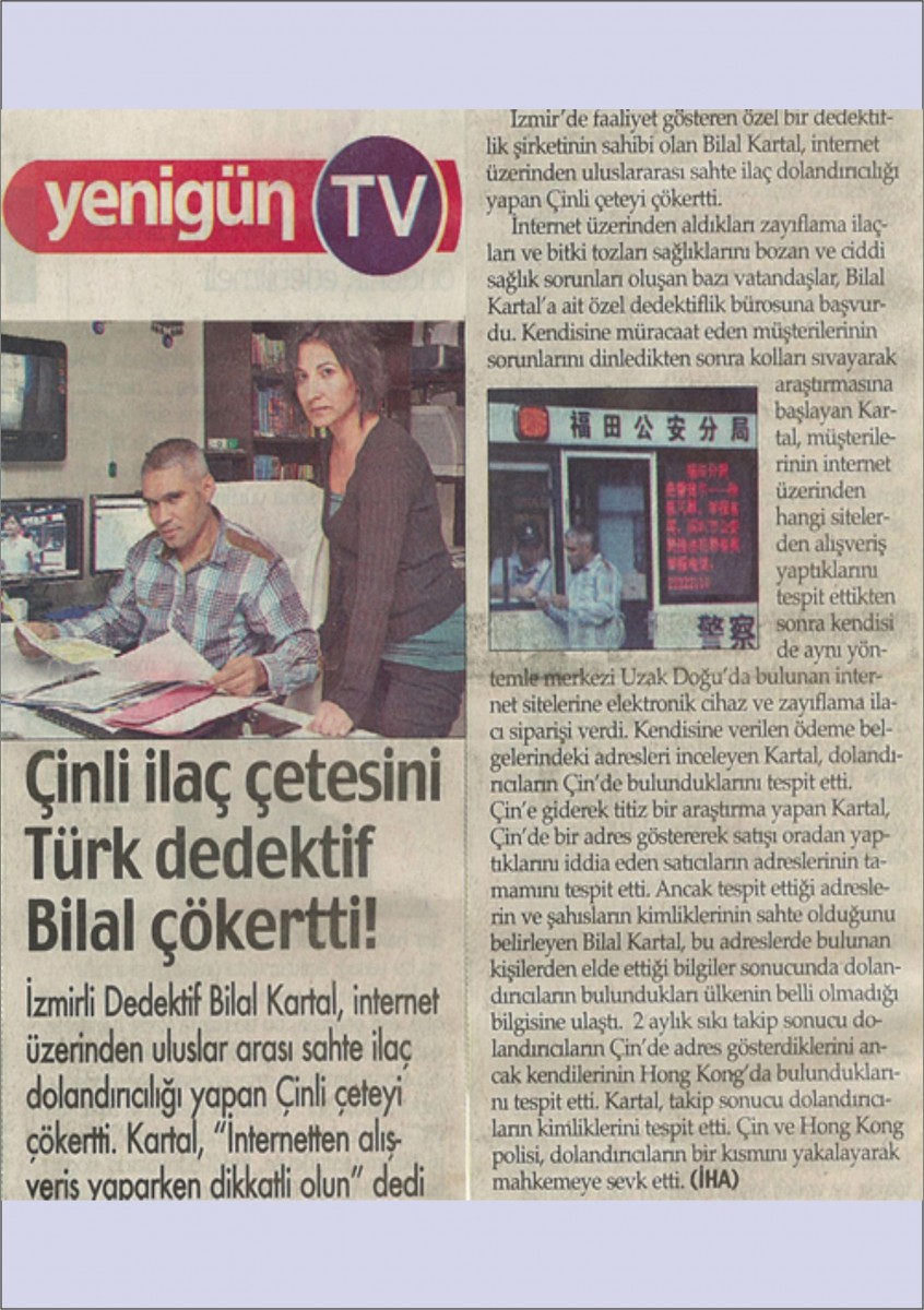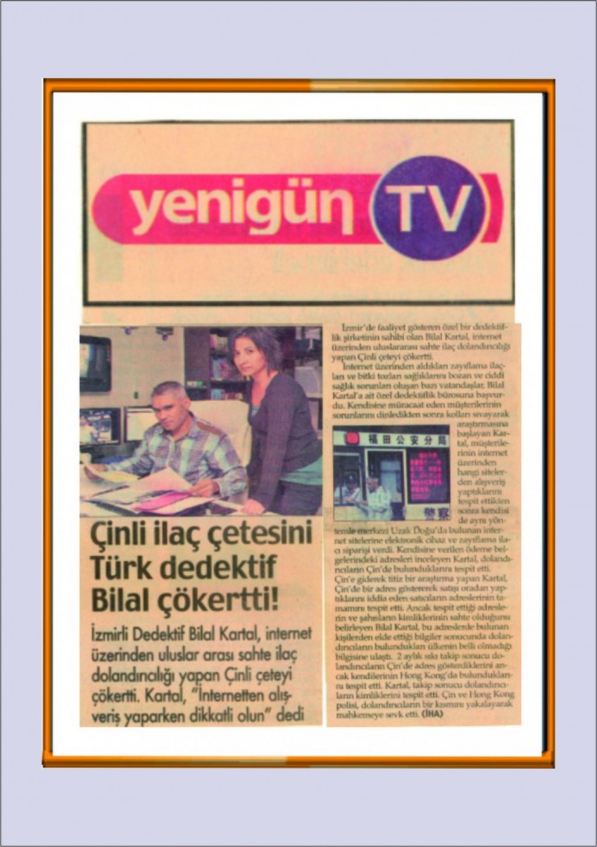 İzmir'de kurulan ilk özel dedektiflik bürosu, fuar etkinlikleriyle de basın aracılığıyla tüm çalışmalarını saygıdeğer vatandaşlarımızla paylaşıyor. Bu bakımdan siz de tüm çalışmalarımızı görmek istiyorsanız resmi web sitemizin Basında Biz alanından basında hakkımızda çıkan haber başlıkları, fuar etkinliklerimiz, genel müdürümüzün mesajı ve resmi belgelerimizi tümüyle görebilirsiniz.